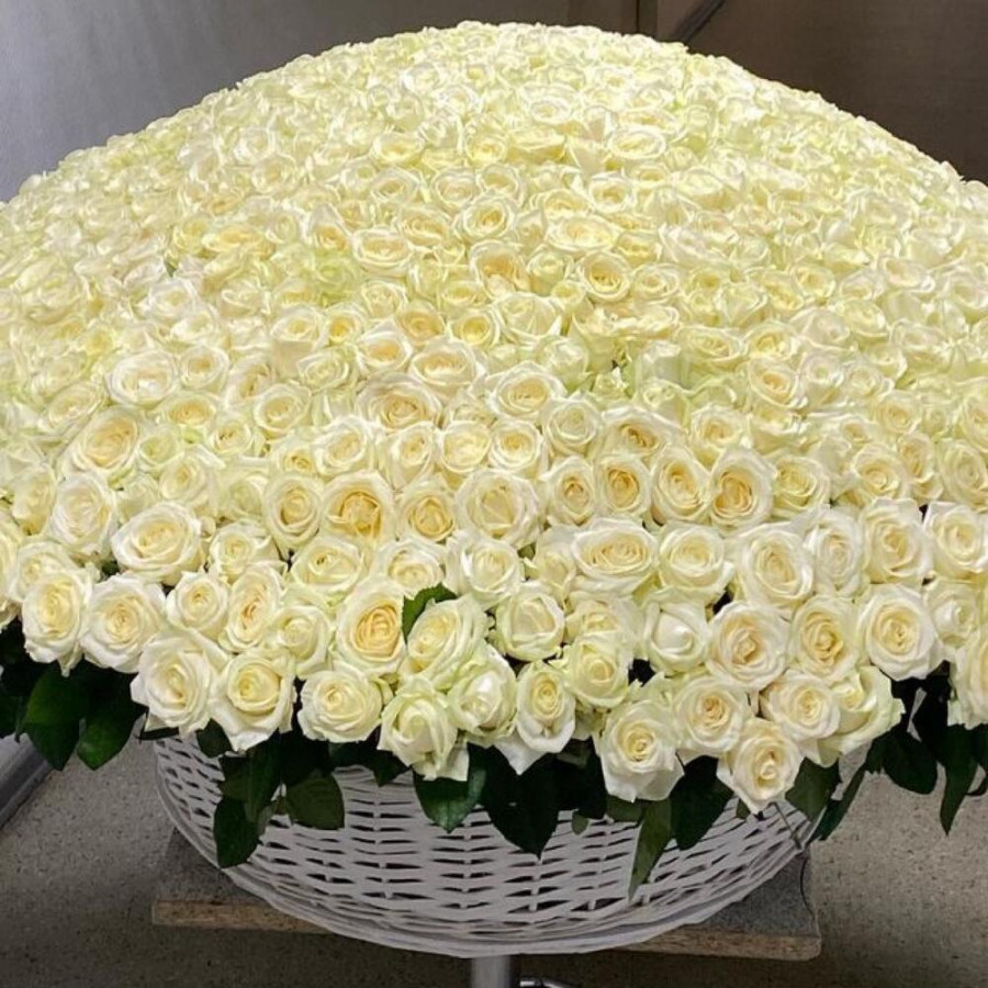 На фото 1001 белая роза в корзине «чистота». В составе: роза 1001 шт, корзина (xl) 1 шт, оазис флористический 27 шт, . Все цветы свежие и ароматные, букет красиво оформлен и отлично подходит для подарка. Доступна доставка цветов или самовывоз.